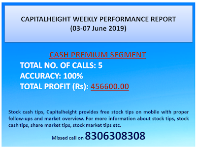 Weekly performance report of CapitalHeight . We are providing best services in Equity or Commodity Market with profitable call in Future Premium, Cash Premium, Option Premium Segment,HNI Future, HNI Option. Our solid administrations enable our customers to accomplish their stock related targets and remain with us for long time.